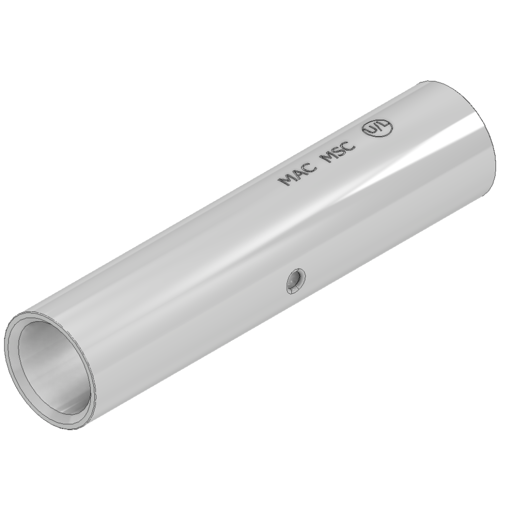 This short barrel end to end cable coupler is fabricated of pure, seamless copper tubing and is tin plated for added resistance to corrosion. Produced in a wide range if cable sizes from #1 STR. to 2000 MCM, this economical connector is installed with standard compression tooling.